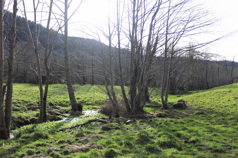 La cruza un arroyo que alimentaba a un viejo molino, ahora calma la sed de un corzo que asustadizo se esconde en el pequeño bosque en la zona más alta de este bucólico paraje.